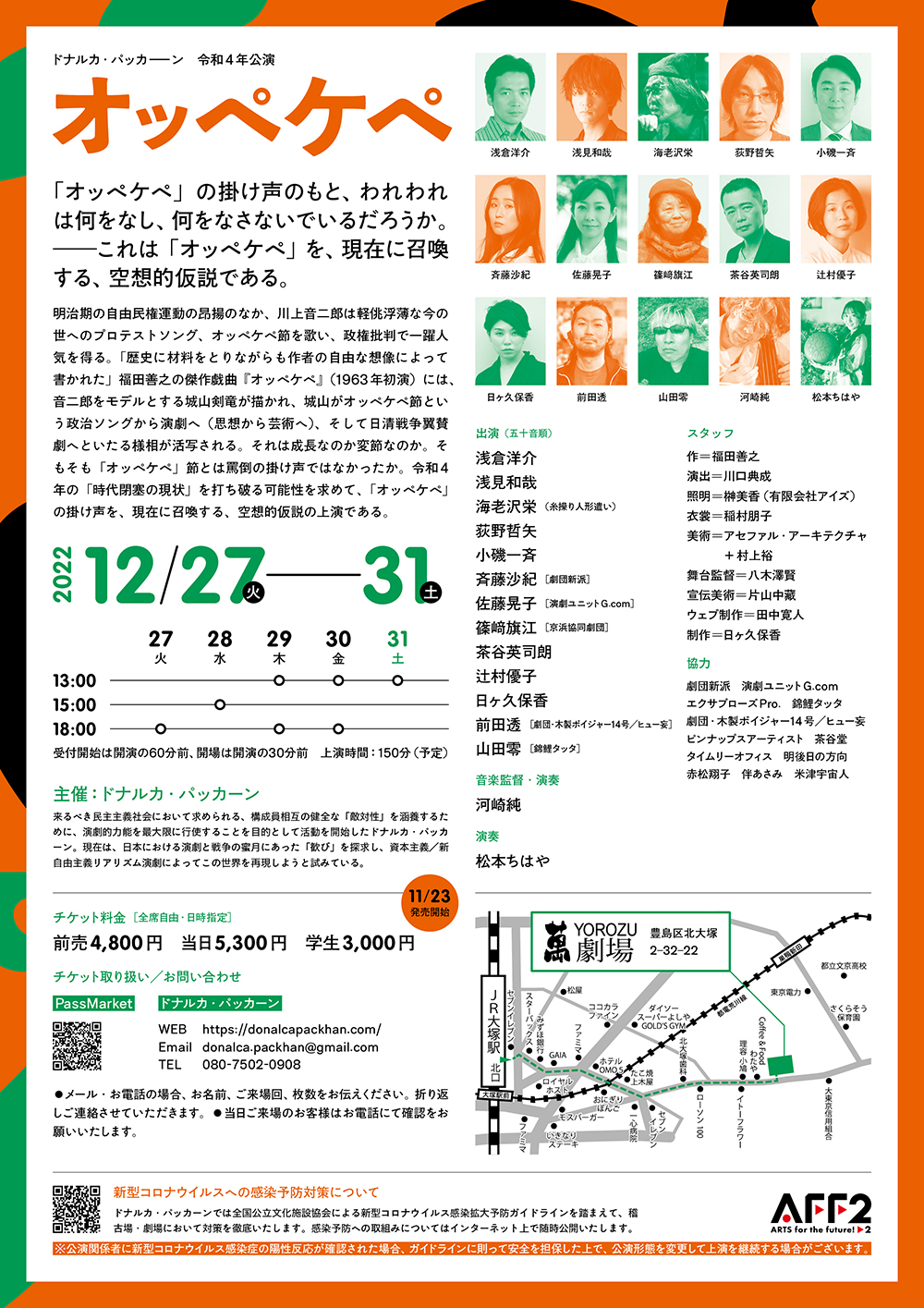 協力:劇団新派、演劇ユニットG.com、エクサプローズPro、錦鯉タッタ、劇団・木製ボイジャー14号/ヒュー妄、ピンナップスアーティスト、タイムリーオフィス、プロトシアター、茶谷堂、明後日の方向、赤松翔子、伴あさみ、米津宇宙人